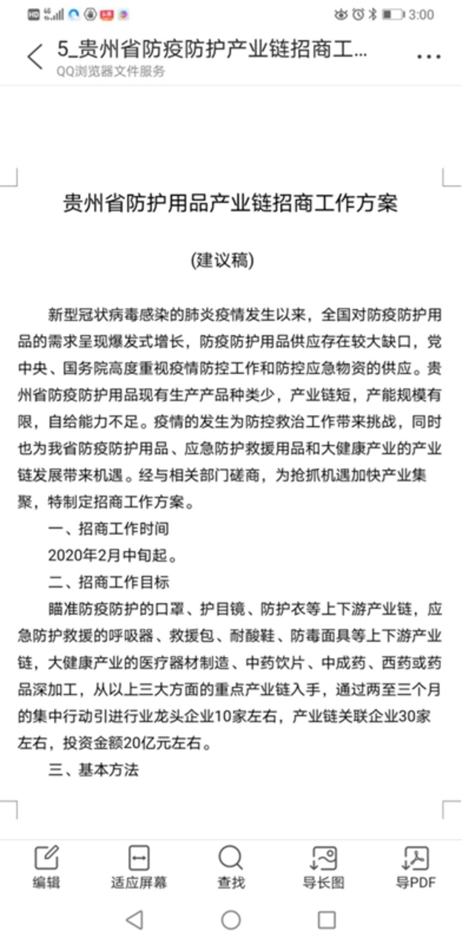 曾红于2019年加入九三学社,作为一名新社员,面对来势汹汹的疫情,她说:“我虽然不能到一线抗击疫情,但可以立足本职岗位,结合职能职责的特点为抗击疫情做贡献”。接受任务后,她立即组织处里同志认真思考,集思广益,查阅资料,咨询专家,奋战7天起草了《防疫防护应急救援用品产业链招商工作方案》,该工作方案重点从贵州省防疫防护产业现状、大健康康养产业现状等入手进行产业的强链、延链和补链,为基层提出精准招商路径和行业龙头企业的联系名单,使各个市州在非常时期能实现招商工作的主动有为和尽锐出击。调研报告形成后,贵州省投资促进局局长马雷向贵州省政府进行专题报告。2月11日,省政府分管领导胡忠雄同志对该局起草的报告给予肯定。当天下午,谌贻琴省长对报告作出批示。下一步,全省招商系统将重点围绕防疫防护用品产业链进行精准招商,按照贵州省十大千亿级工业产业的战略目标,每个市州力争招引防疫防护、应急救援用品龙头企业3至5家,形成贵州省防疫防护应急救援用品产业链的集聚效应。(九三学社贵州省委 胡英明)