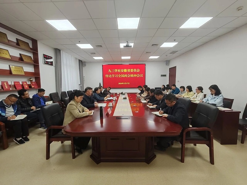 3月17日上午,九三学社安徽省委员会召开传达学习全国两会精神会议。会前,通过视频会议系统组织参加九三学社中央2026年全国两会精神传达学习会暨第十三期政治辅导网络课堂学习,学习结束后,立即召开会议,研究部署相关工作。省政协副主席、社省委主委罗平主持会议并讲话,副主委范立新、何庆瑞、丁立健,秘书长殷黎莉及机关全体干部参加会议。