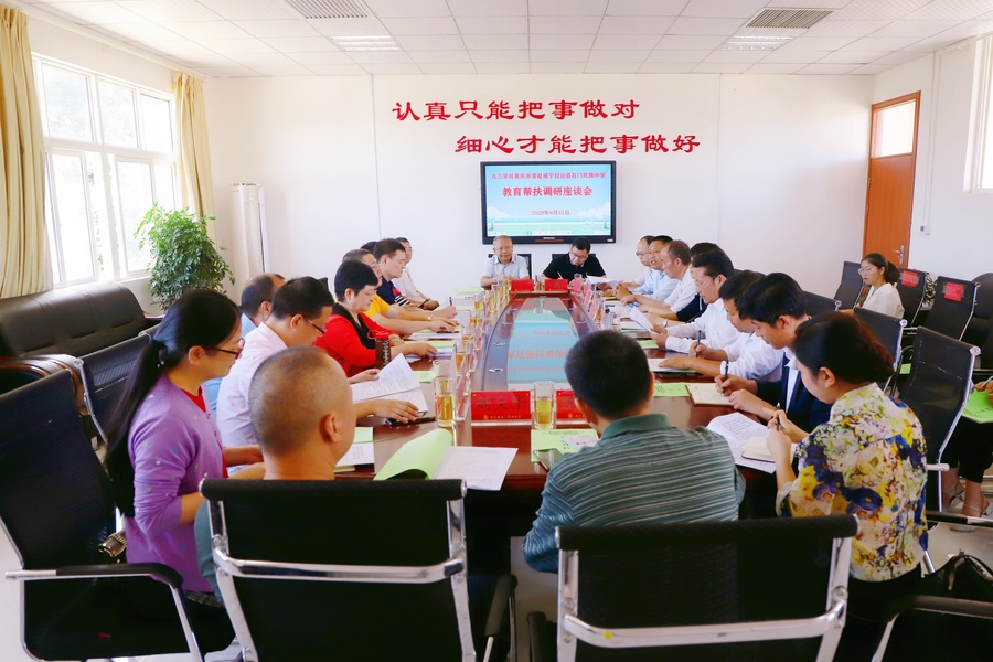 在石门乡,黄华一行参观石门中学并座谈。座谈会上,石门中学和重庆九十五中学相关同志向与会同志详细介绍了2016年以来结对帮扶石门中学的有关工作措施有力、重点突出、内容广泛、成效显著,调研组一行与会领导分别谈感受、提建议,表示在下步工作中要改善工作方法、增加交流频次、提升帮扶效果,把因疫情耽误的时间追回来。
