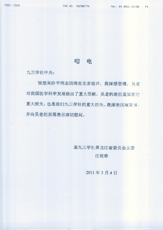 >>专题报道>>沉痛悼念吴阶平同志>>沉痛哀悼