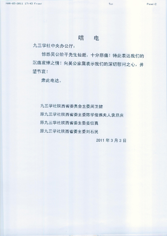 周卫健等发来唁电