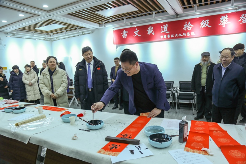 1月20日,社北京市委在首都师范大学中国书法文化研究院举办写春联福字活动。社北京市委主委刘忠范,专职副主委、一级巡视员左小兵,副主委叶培贵、吴宜夏,秘书长郭艺,首都师范大学党委书记曹文军、副书记孙晓峰出席活动。北京九三书画院副院长海国林主持活动。